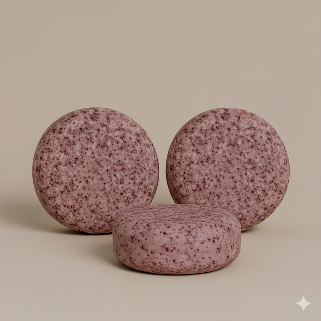Modo de uso: Con el cabello mojado, frota suavemente la barra sobre el cuero cabelludo hasta formar espuma. Masajea con las yemas de los dedos, luego enjuaga con abundante agua.